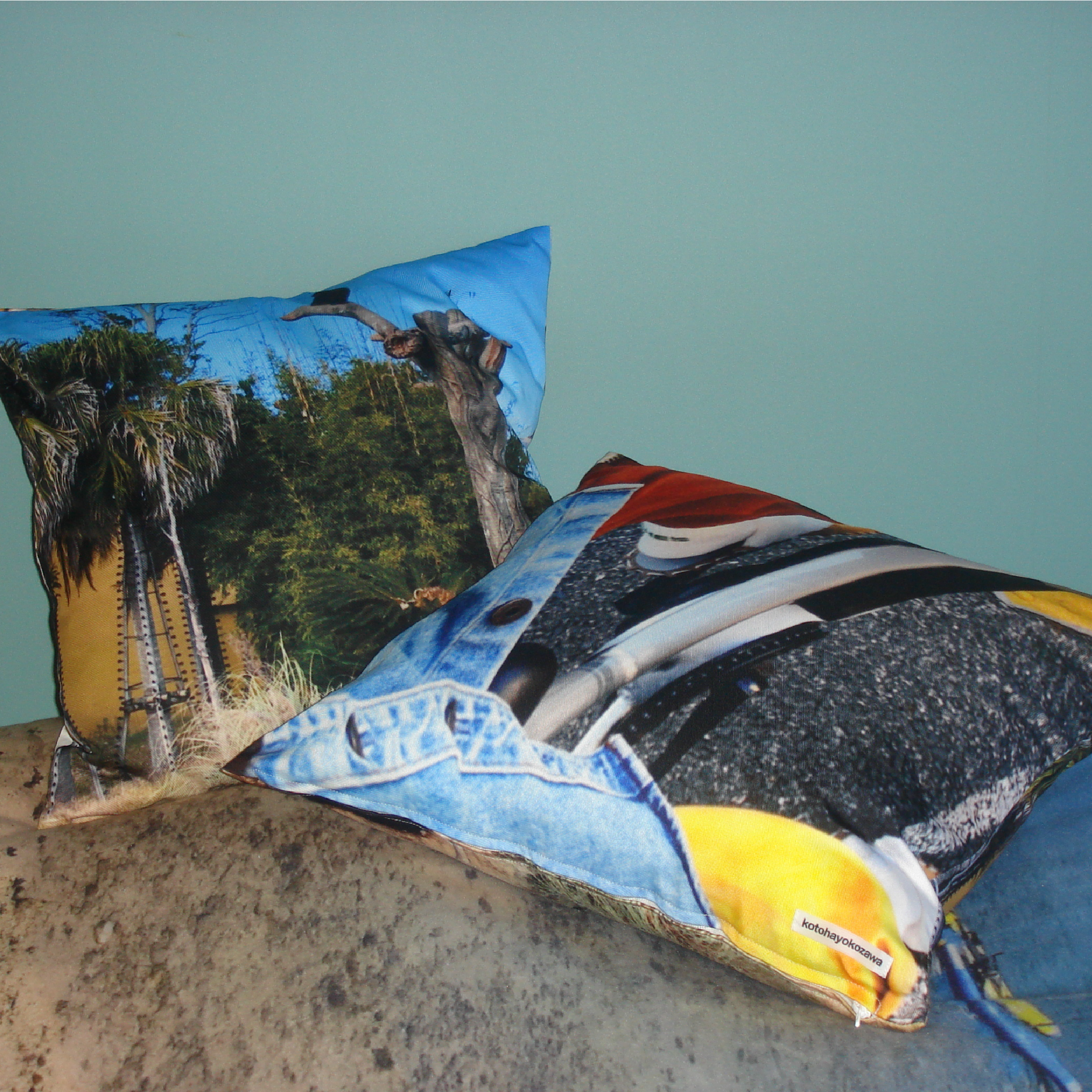 HOTEL SHE, KYOTOとコトハヨコザワ(kotohayokozawa)コラボレーションによる期間限定のコンセプトルーム限定デザインのクッションカバー。 ※一点での販売となります。 ◎サイズ:45cm × 45cm ◎両面フルデザイン ◎カバーのみの販売となります。