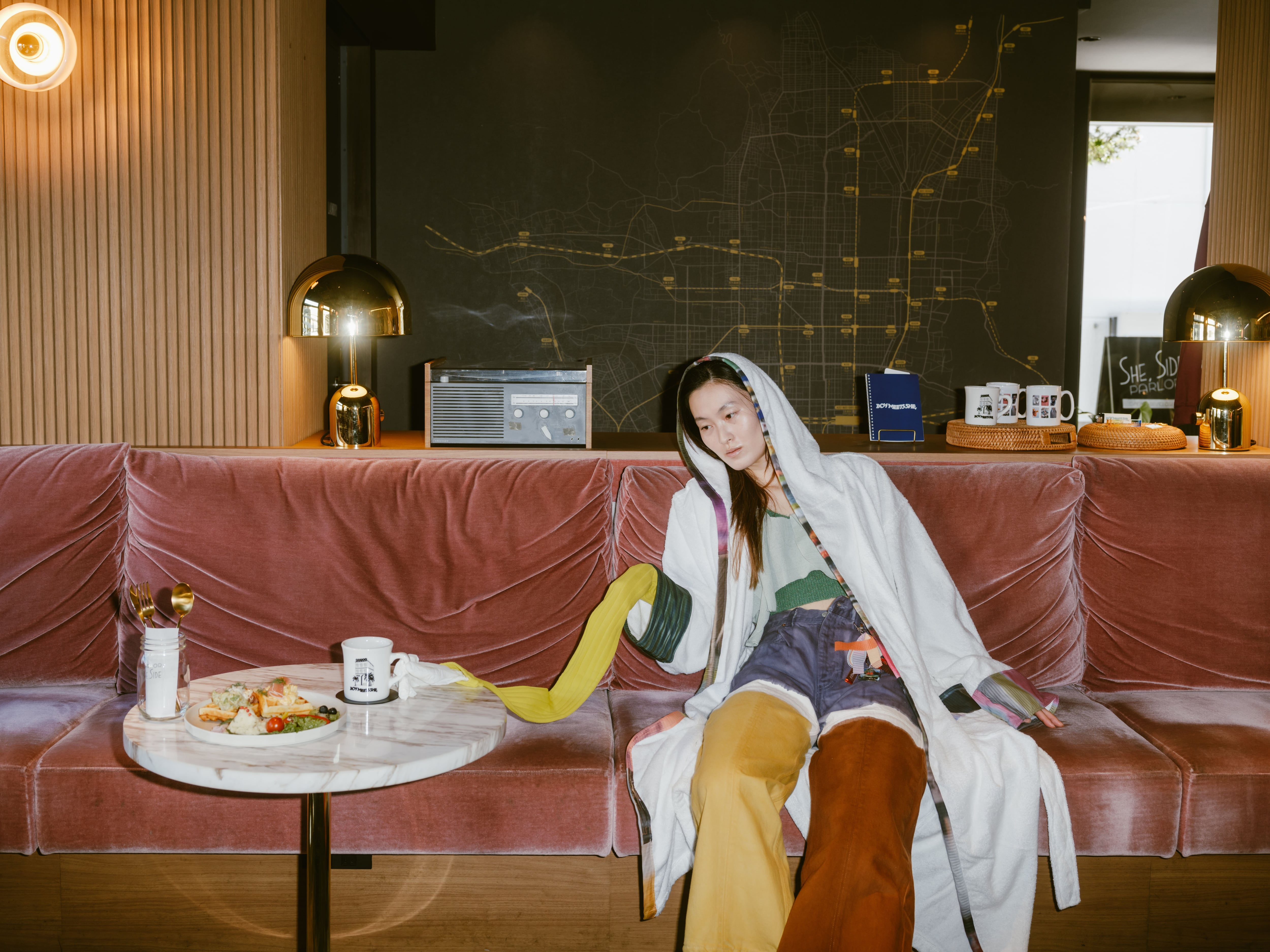 HOTEL SHE, KYOTOとコトハヨコザワ(kotohayokozawa)コラボレーションによる期間限定のコンセプトルーム限定デザインのフード付きバスローブ。 パイピングに過去のグラフィックの残布を使用したメモリアルな一着です。タオル地のバスローブなので、入浴後のお部屋着としても、ガウン代わりにも、海へ遊びに行く際のお供にも、さまざまな場面で活躍してくれます。 ◎size:free