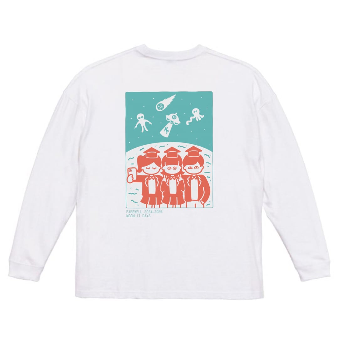フロントにタイトルロゴを、バックに卒業写真風イラストをプリント。ゆったりサイズのビッグシルエットロンTです。 【L】身丈76 / 身幅68 / 肩幅68 / 袖丈59 【XL】身丈78 / 身幅71 / 肩幅71 / 袖丈61
